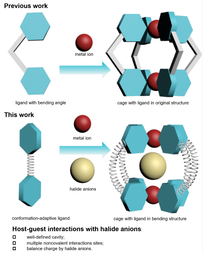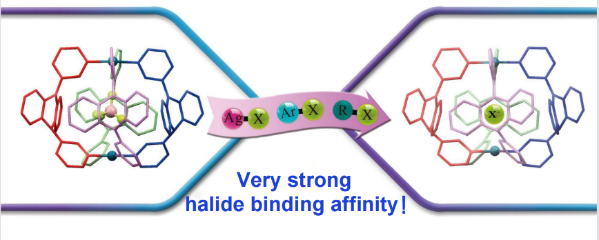 阴离子超分子化学在化合物提取、催化、传感、运输、阴离子模板合成以及超分子自组装等多个领域存在广泛应用。卤素阴离子在化学、生物、工业、环境等方面扮演重要角色,因此探索设计新型高亲和力的卤素离子受体并深入理解其独特的主-客体化学机制具有非常重要的学术价值和应用前景。相较于其他卤素离子受体,配位笼与卤素离子之间的主客体化学鲜有报道。近日,洛神直播