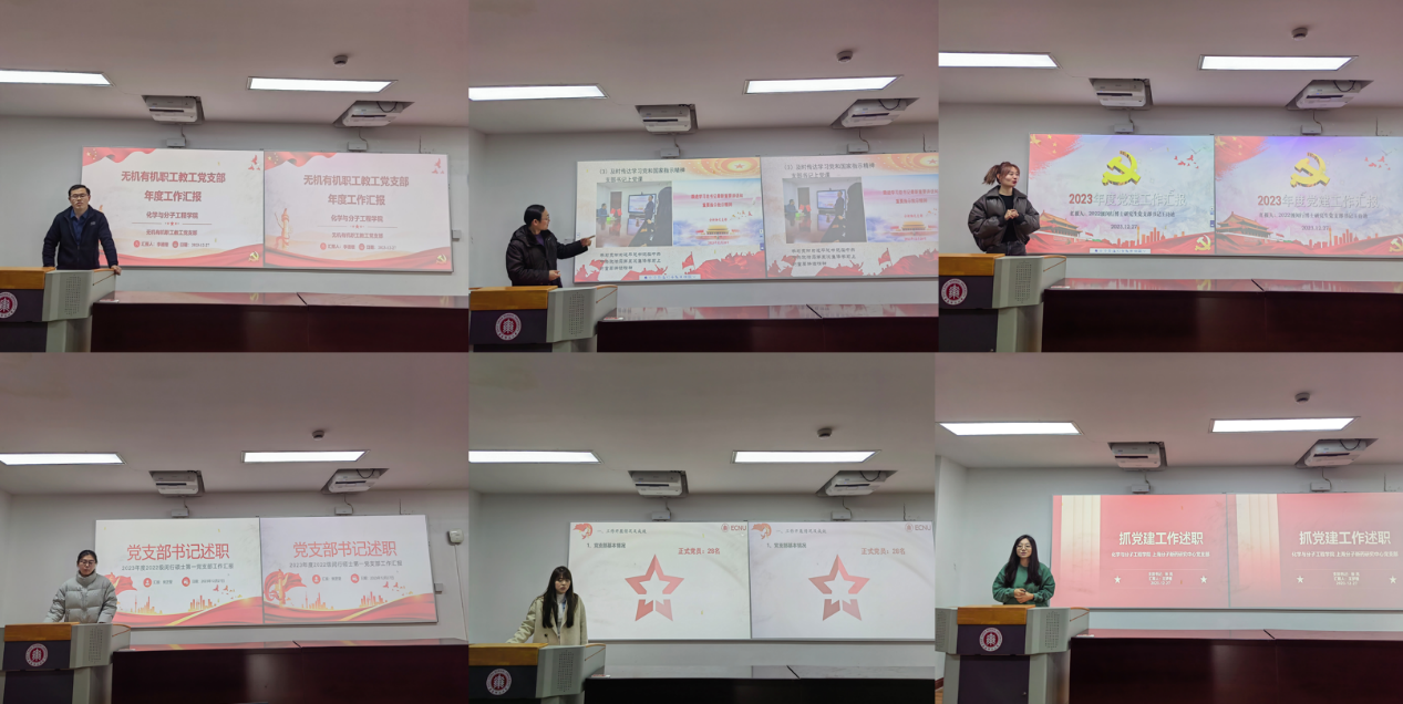 上海分子新药研究中心党支部宣传委员王梦雅、分析物化海水党支部书记马士禹、高分子实验中心党支部书记黄琨、无机有机职工党支部书记李德增、本科生党支部书记史琳,2021级普陀校区博士研究生党支部书记罗娟娟、2021级闵行校区博士研究生党支部书记朱韵、2022级普陀校区博士研究生党支部书记高志文、2022级闵行校区博士研究生党支部书记王诗迪、2021级普陀校区硕士研究生党支部书记张见闻、2021级闵行校区硕士研究生党支部书记王伟琛、2022级普陀校区硕士研究生党支部书记刘雅妮、2022级闵行校区硕士研究生第一党支部书记樊芝莹、2022级闵行校区硕士研究生第二党支部书记贺栖桐进行现场述职,十四位师生党支部书记围绕《洛神直播 党支部工作细则(试行)》要求,聚焦基层党支部“七个有力”建设标准,对2023年度支部书记履职情况进行了汇报,大家重点介绍了支部工作特色,查摆了存在的问题并在分析问题的基础上提出了后续工作目标和思路。